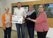Die Co-Präsidentinnen des KFV Brugg Sabine Gäumann und Hanni Geissmann sowie Vorstandsmitglied Hedy Wittweiler (v.l.) überreichen den Scheck an Dieter Hermann.